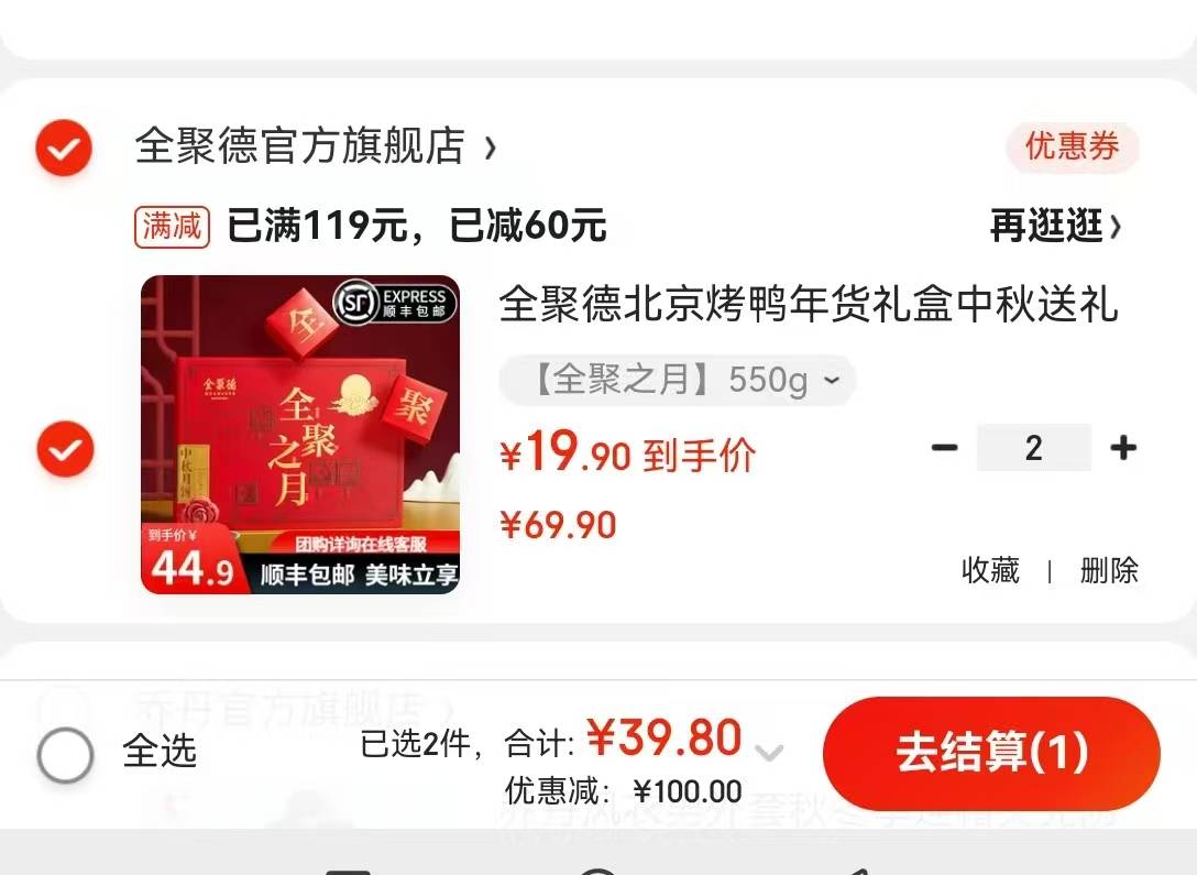月饼捡屚!全聚德車先领59-20补贴券