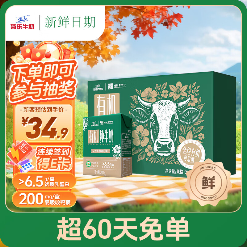 菊乐有机牛奶 204g*18盒礼盒装 主图进zbj专享价加购,5首单,