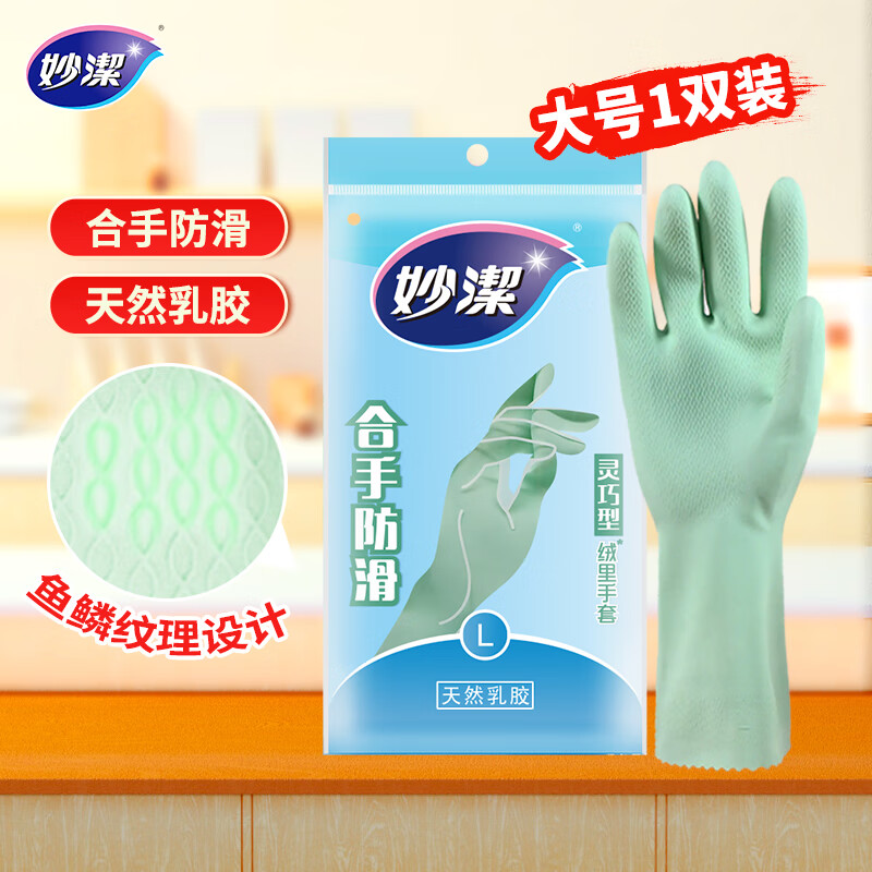 掉落5券,叠1首单 付0.9 妙洁灵巧型柔韧手套 天然如胶 1双装大号
