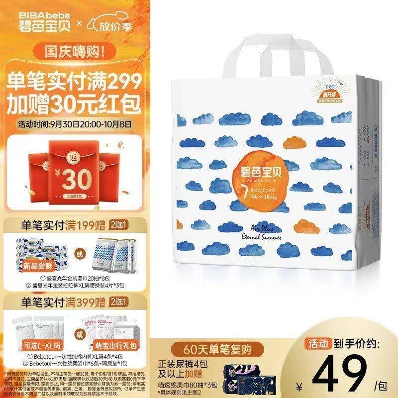 宝妈看 碧芭宝贝神价 不要错过最近貌似都涨价了 基本都在45一包 这个折才39一包 不要错过碧芭宝贝 盛夏光年系列拉拉裤