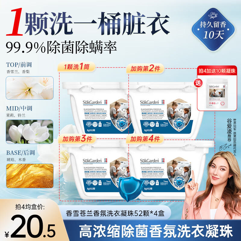 掉落11-5券 叠2首单付9.9亓 蔬果园香雪苍兰香氛洗衣凝珠8g*52颗