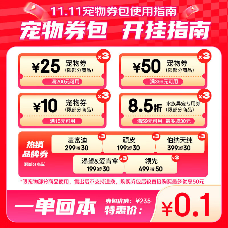 0.1权益券包 京觅京东宠物11.11狂欢够物节