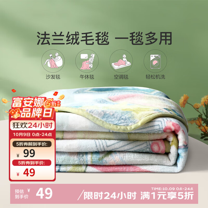 富安娜法兰绒毛毯 49元