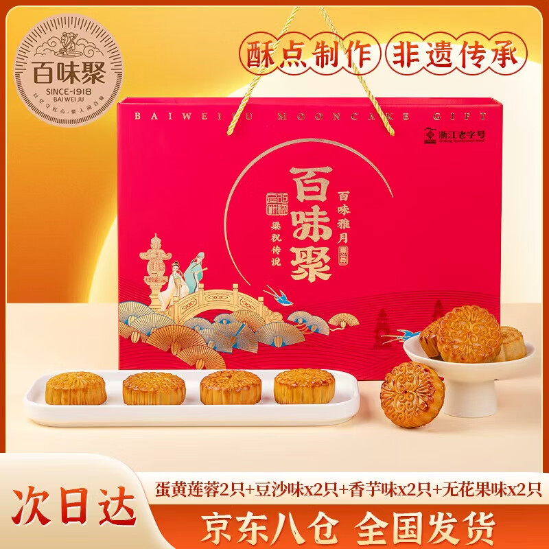 2件0 百味聚百味雅月月饼礼盒 莲蓉蛋黄豆沙月饼四味八饼480g中秋送礼批发