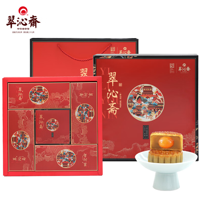 2-3件都是0 翠沁斋中华老字号清真中秋月饼礼盒装送礼蛋黄莲蓉9饼 感恩7