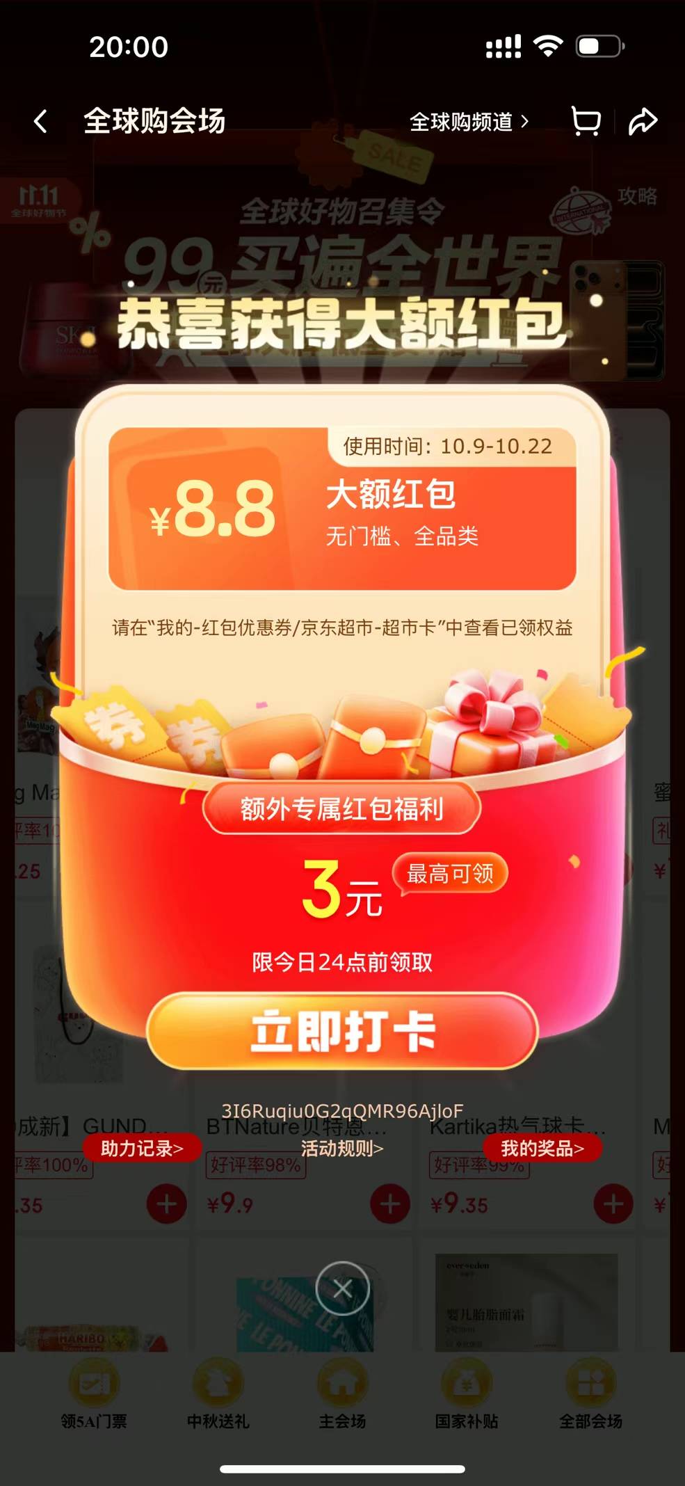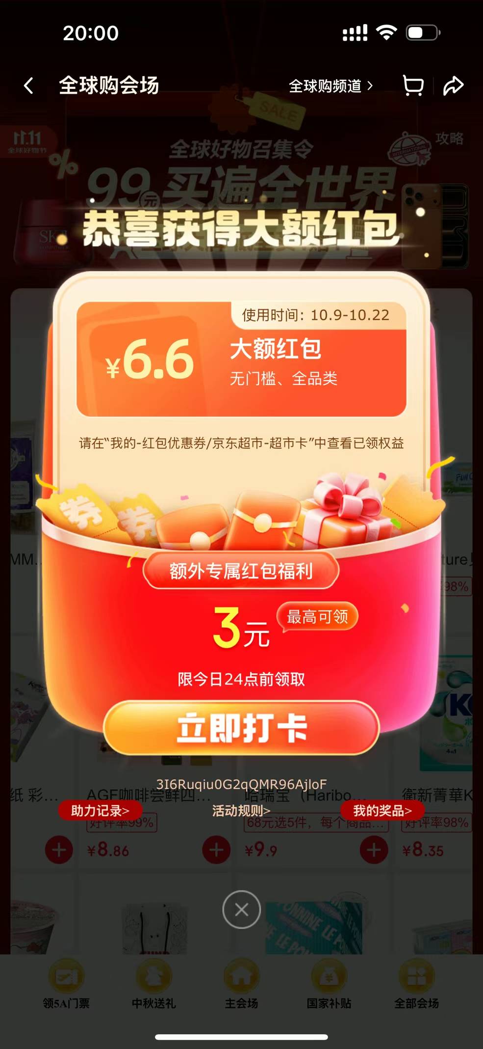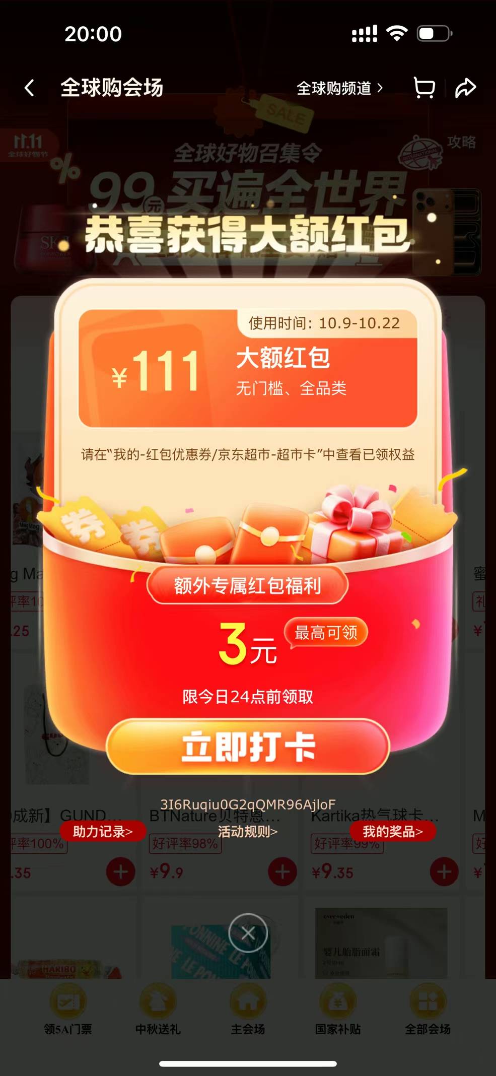 ⏰20点,首发!京東无门槛鸿包,搶11111亓京東嗖:红包多多488或戳3次: