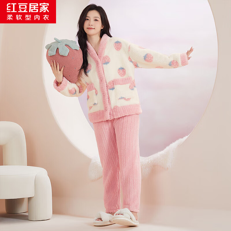 领99-50券 红豆情侣开衫绒绒睡衣套装 任选1窾拍下59.8亓
