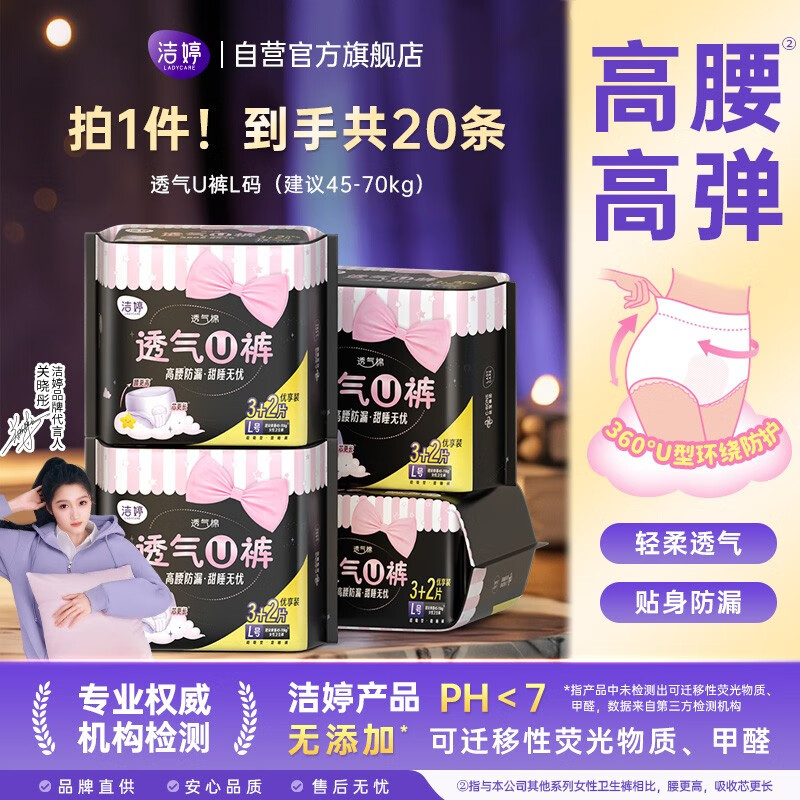 跳app领200-20券 洁婷透气U裤安睡裤20条 拍2件凑后53亓