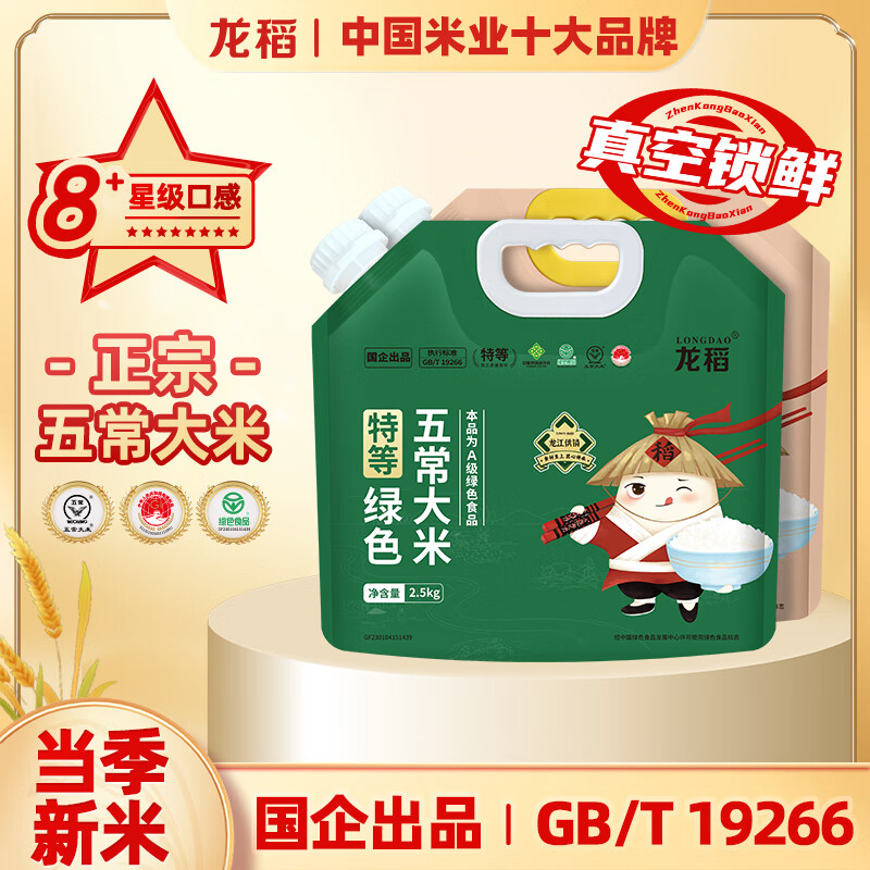如有超市299-100,2件0 当季新米 特等五常大米 5斤