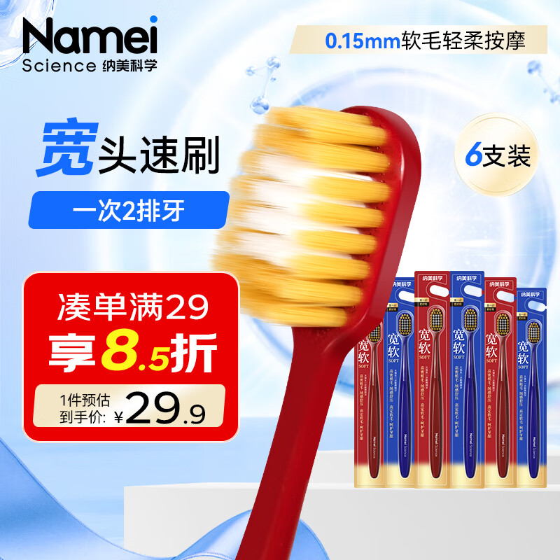纳美(Namei)软毛宽头牙刷 6支装 砸5奍和3奍 2.9有赠品