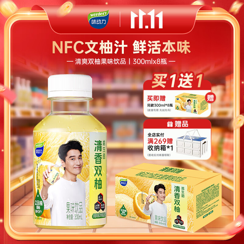 味动力益生菌双柚汁300ml*8瓶 4件,每件19.11,买一送一 凑