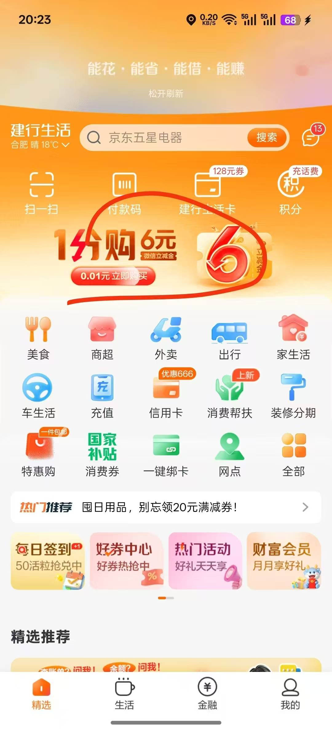 建行生活首页两张立减金通用如果没有这个入口等等,他会自己翻页