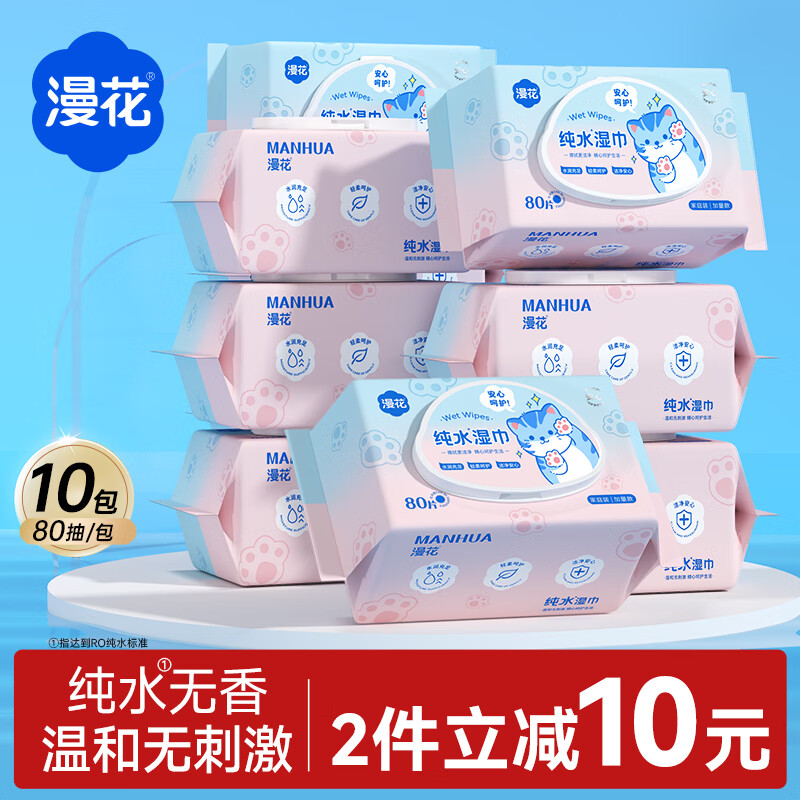 部分地区 漫花婴儿湿巾80抽*10包,19.9