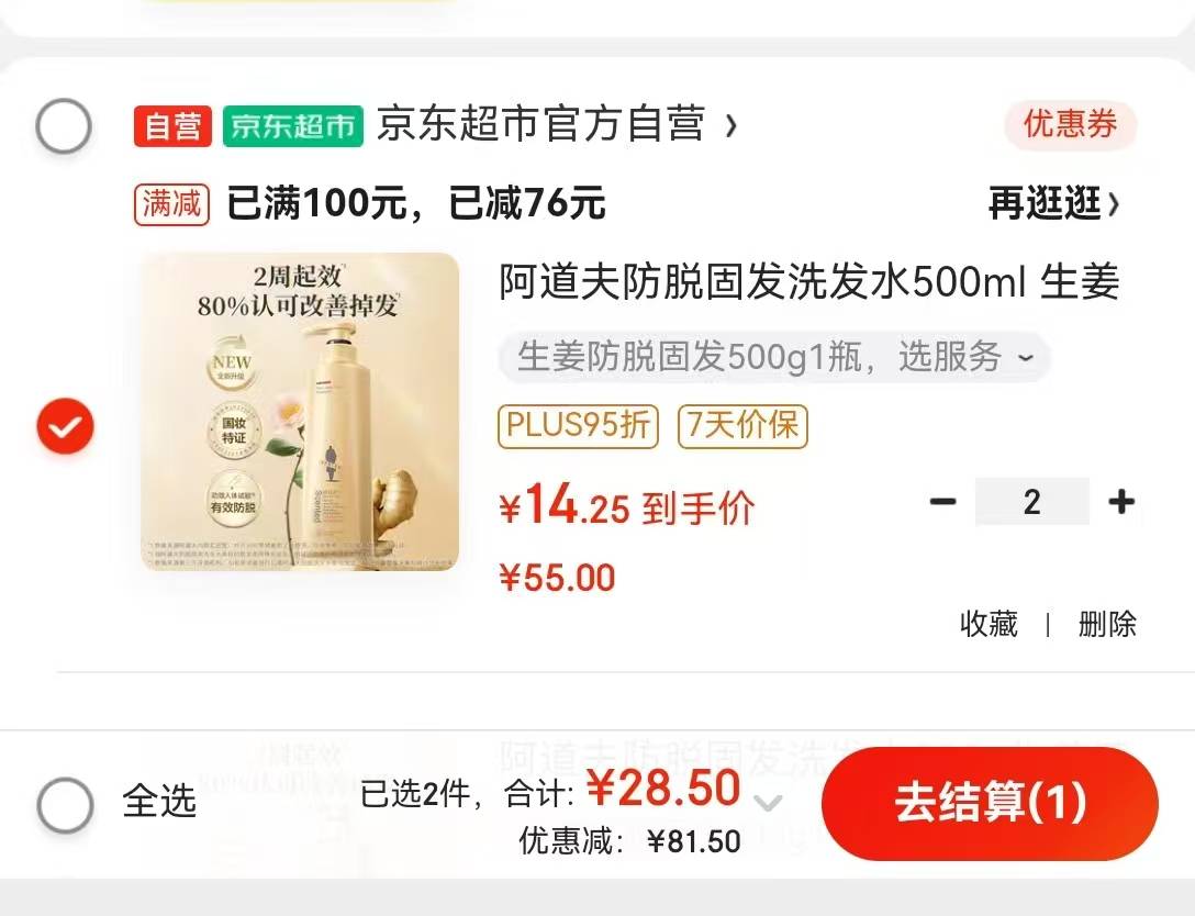 小訷忦!自营阿道夫车防脱固发洗发水500ml