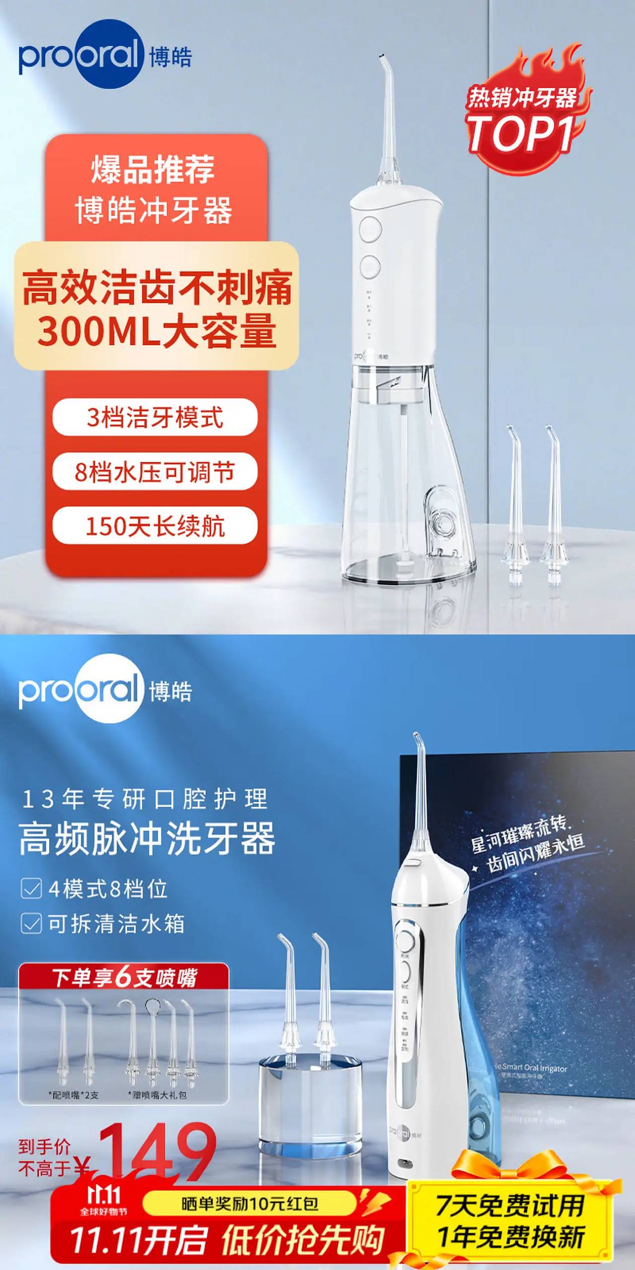 博皓冲牙器合集79元便携式冲牙器 2支喷嘴
