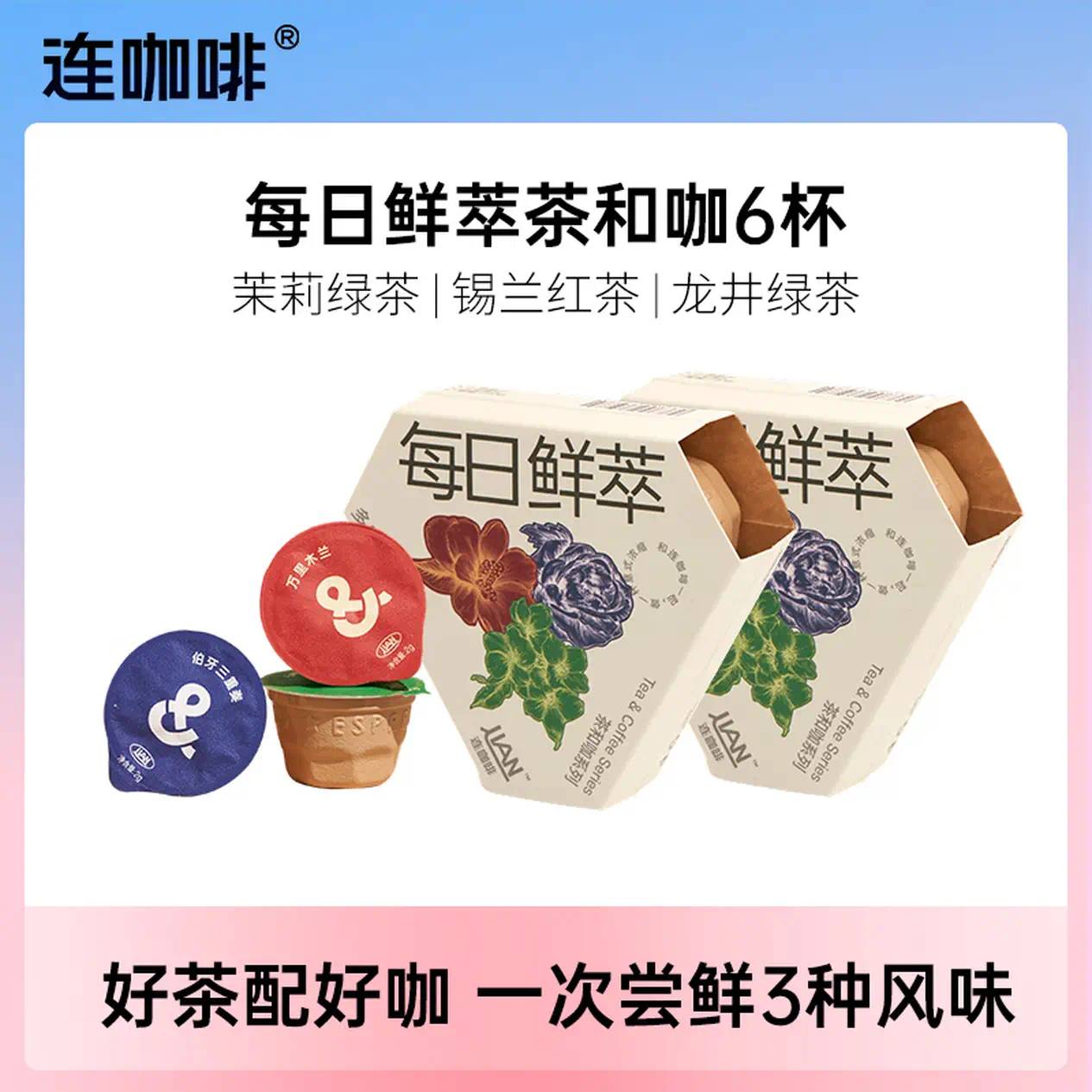 连咖啡 每日鲜萃 速溶咖啡粉意式浓缩 2g*6颗https://u.jd.com/p1LXOxe————10.9 元包邮❤️风味混合装好茶配好咖 一次尝鲜3 种风味!