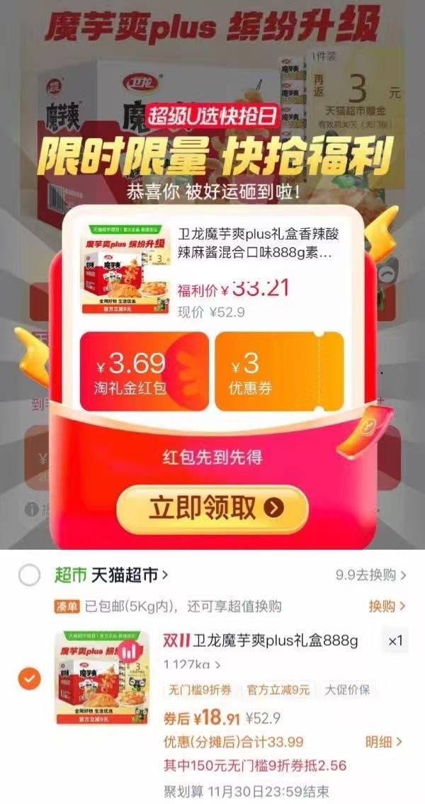 卫龙魔芋爽plus礼盒混合口味888g,领礼金