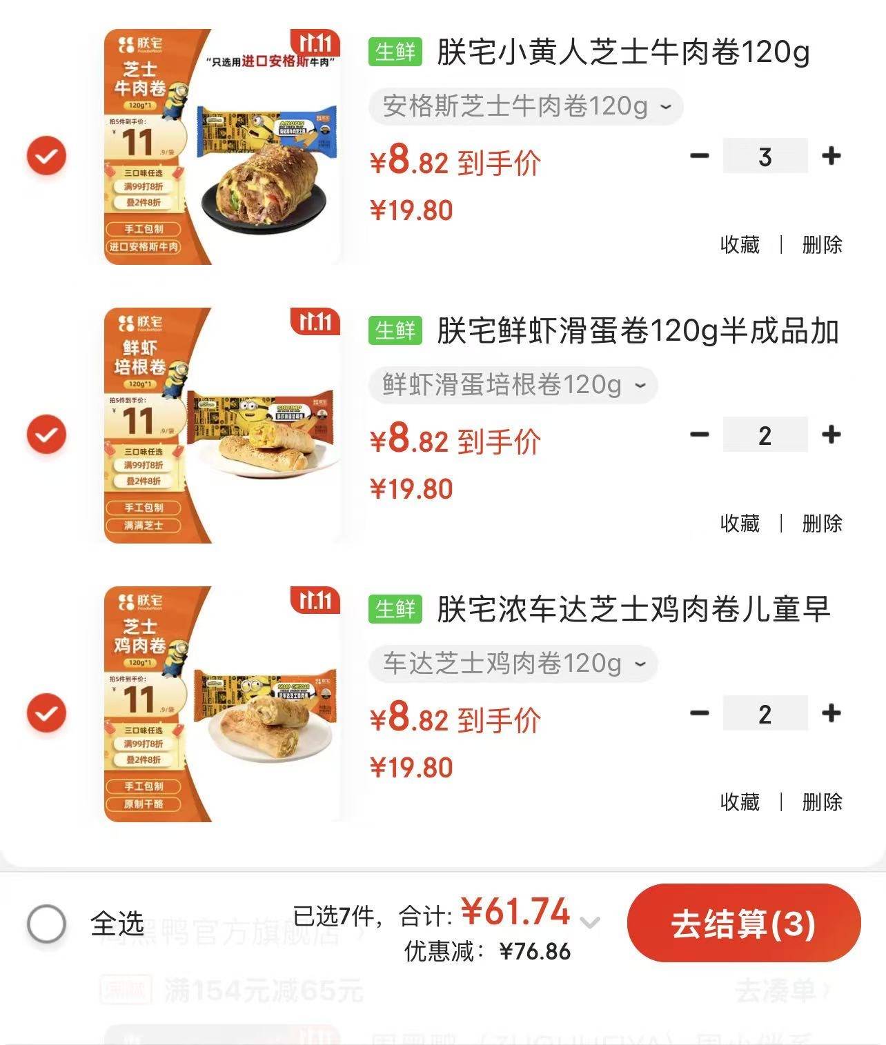 朕宅 早餐卷系列券全领http://z.mtpop.com/53ubhttps://u.jd.com/p1rMGf2自营朕宅浓车达早餐芝士鸡肉卷120ghttps://u.jd.com/prrM85m朕宅鲜虾滑蛋卷120ghttps://u.jd.com/pOrMQZC朕宅小黄人联名芝士牛肉卷120ghttps://u.jd.com/pGrMa1E任拍7件 61.88 元包邮,折8.8 元/袋,给早餐换点花样[呲牙]