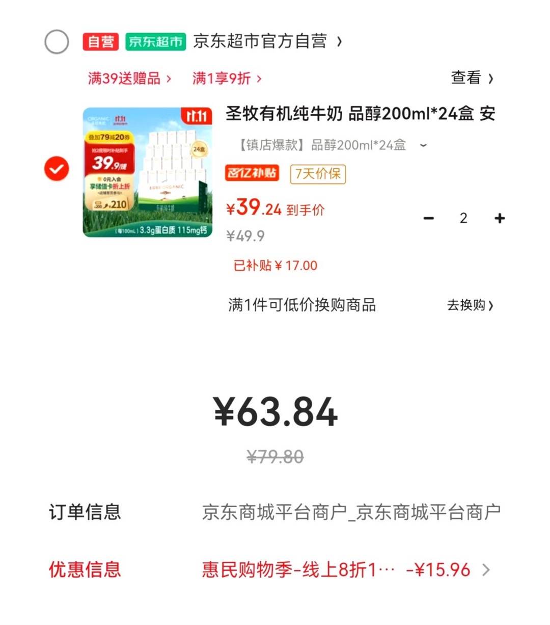 車还在!圣牧纯奶漏忦国补8点开始!1周1次①先领79-20补贴券https://u.jd.com/p6HE99n②拍2!圣牧有机奶24盒https://u.jd.com/prHPfYQ③选云闪付吱付有国补*用过的换号! 多拍换号*用国补!不能叠虹包——————♦63.8亓!才折31.9/箱*全程有机!这忦重视了*每天国补名额限量! 赶早