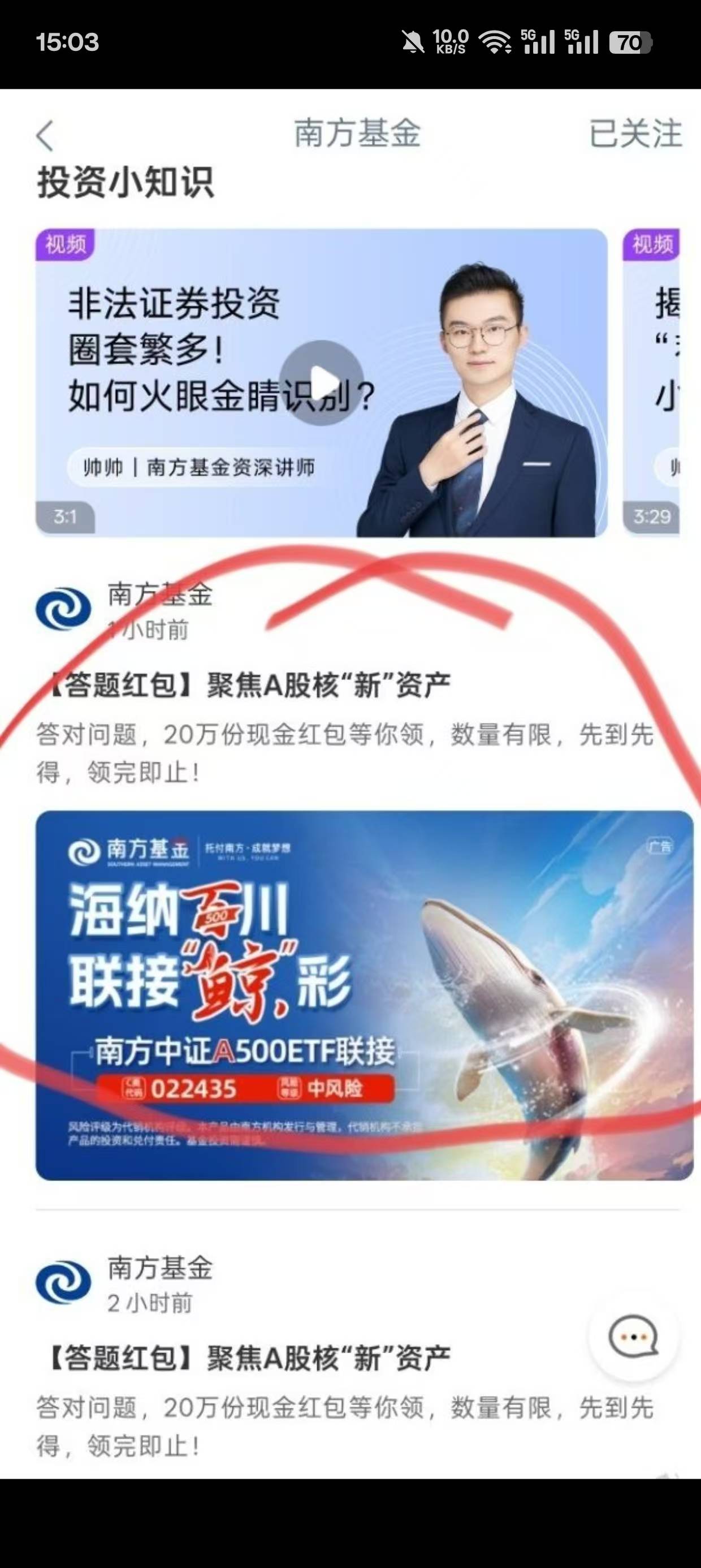 路径:工行app搜索南方基金,找到场景号,向上滑找到图中画圈位置,答案bbbbb。火爆一直点