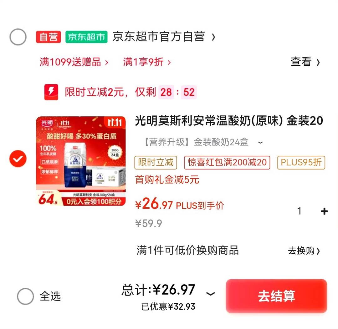 漏忦車!自营酸奶車先领3张补贴券https://u.jd.com/TGERheJhttps://u.jd.com/TgJiemBhttps://u.jd.com/TaE7VFd光明莫斯利安酸奶*24盒https://u.jd.com/TDJssXu——————♦plus37.5!首単再减5