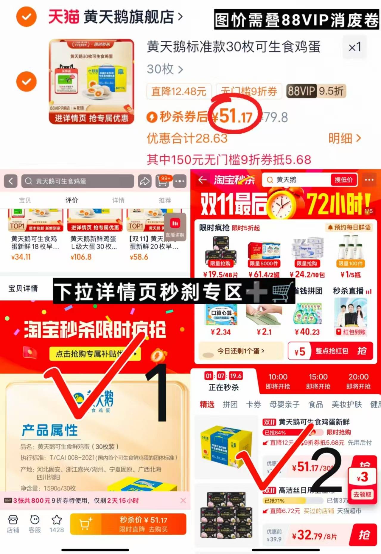 ⭕️黄天鹅可生食鸡蛋1.2‼️⚠️付51.1饭15卡‼️53g*30枚