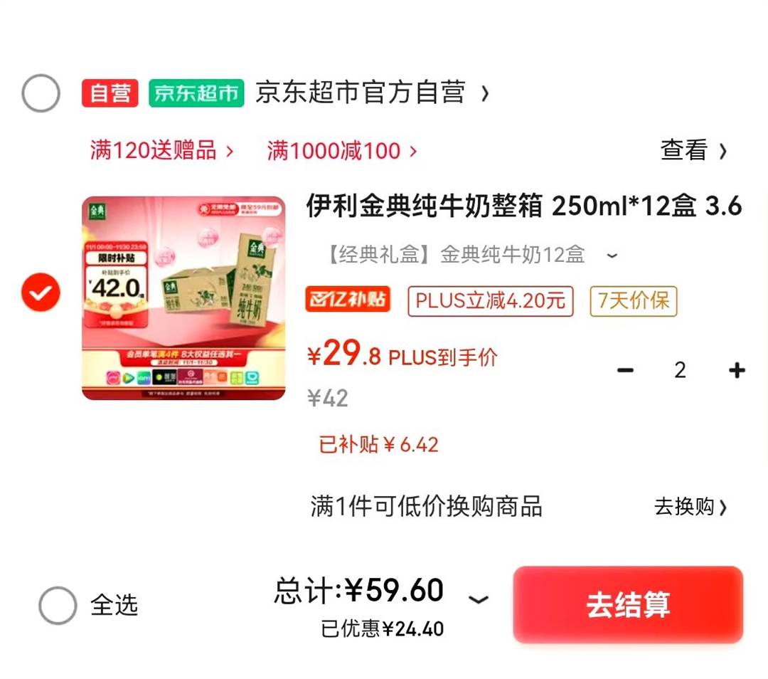 訷忦車!自营金典纯奶先领79-20.2券(限量)https://u.jd.com/WOPAc6l拍2! 金典纯奶*16盒https://u.jd.com/WDPWr6E——————♦plus59.6! 才29.6/箱*赠立减更底!有需速屯