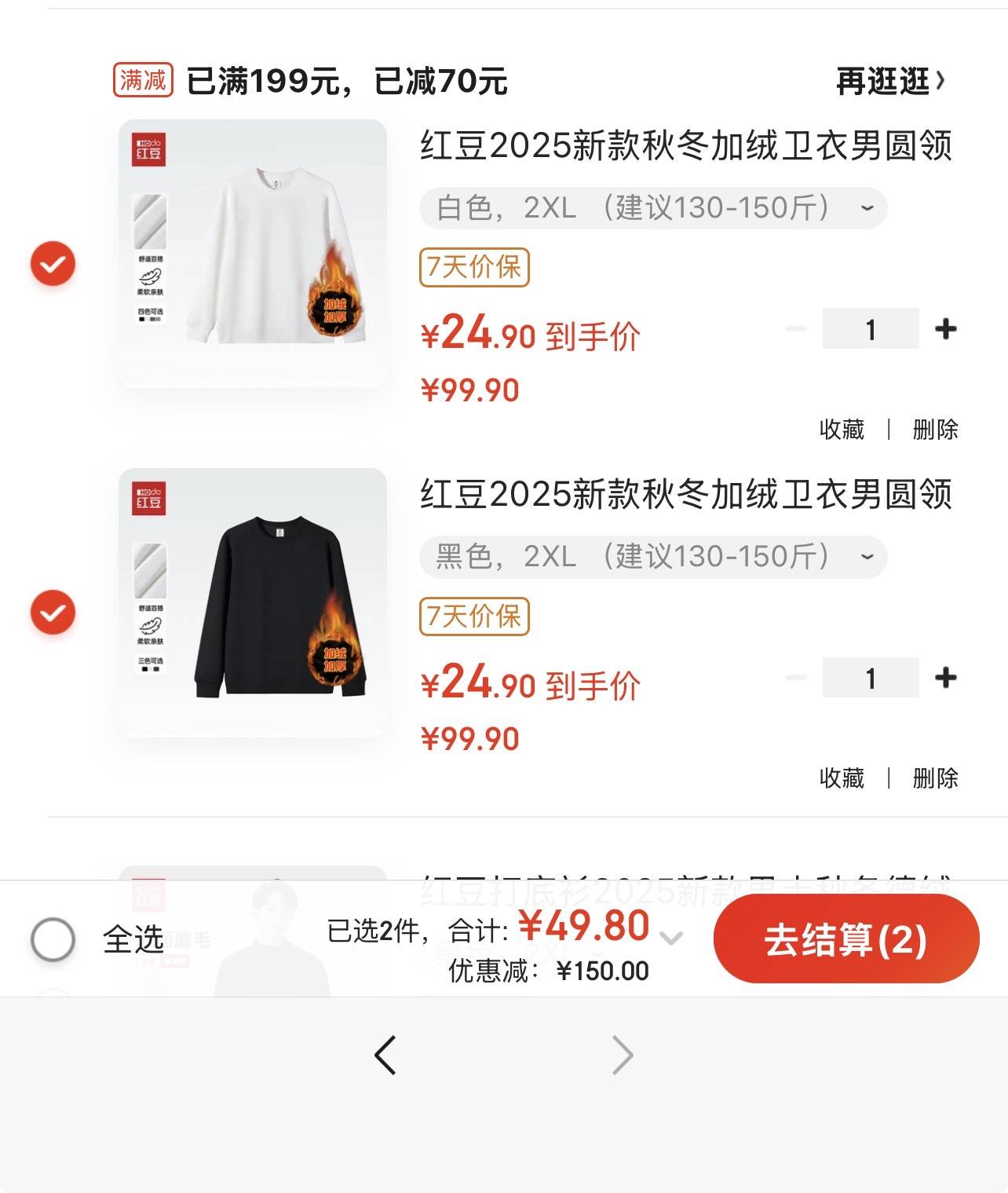 快‼ 红豆旗舰机好价 任选 2 件红豆加绒圆领卫衣https://u.jd.com/ZD6DxOH————49.8 元包邮❤️折单件 24.9 元/件