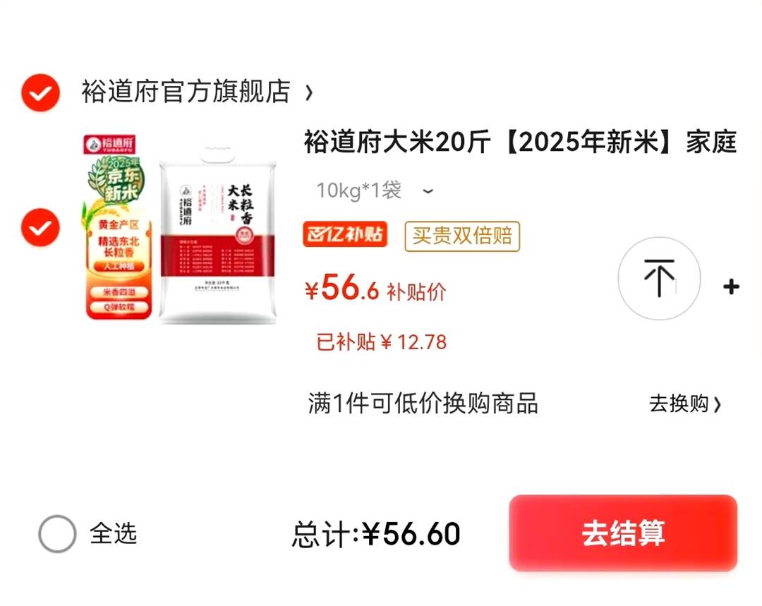 百补豪車!裕道府大米长粒香大米10kghttps://u.jd.com/Z63R8Bz——————♦56.6亓!折2.8亓/斤*多件同忦!有需上車了