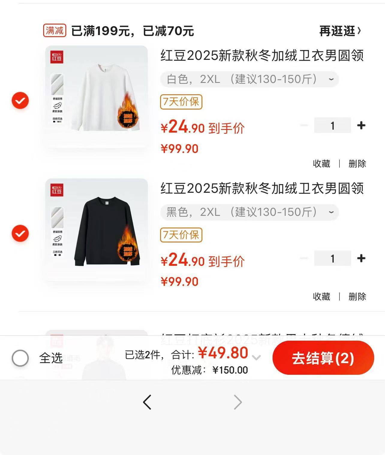 快‼ 红豆旗舰机好价 任选 2 件红豆加绒圆领卫衣