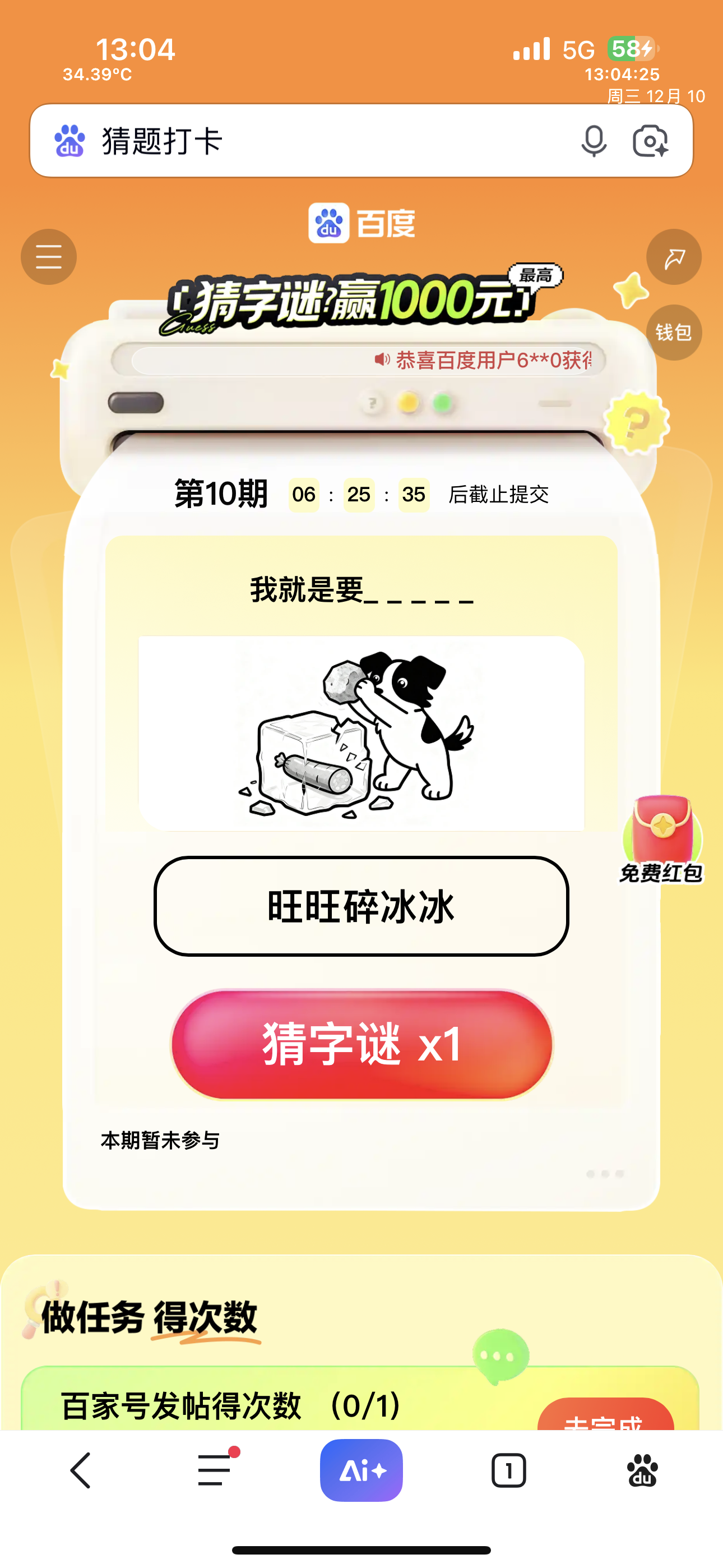 19:30截止 20点开记得玩百度app搜【猜题打卡】❤️答案:【旺旺碎冰冰】