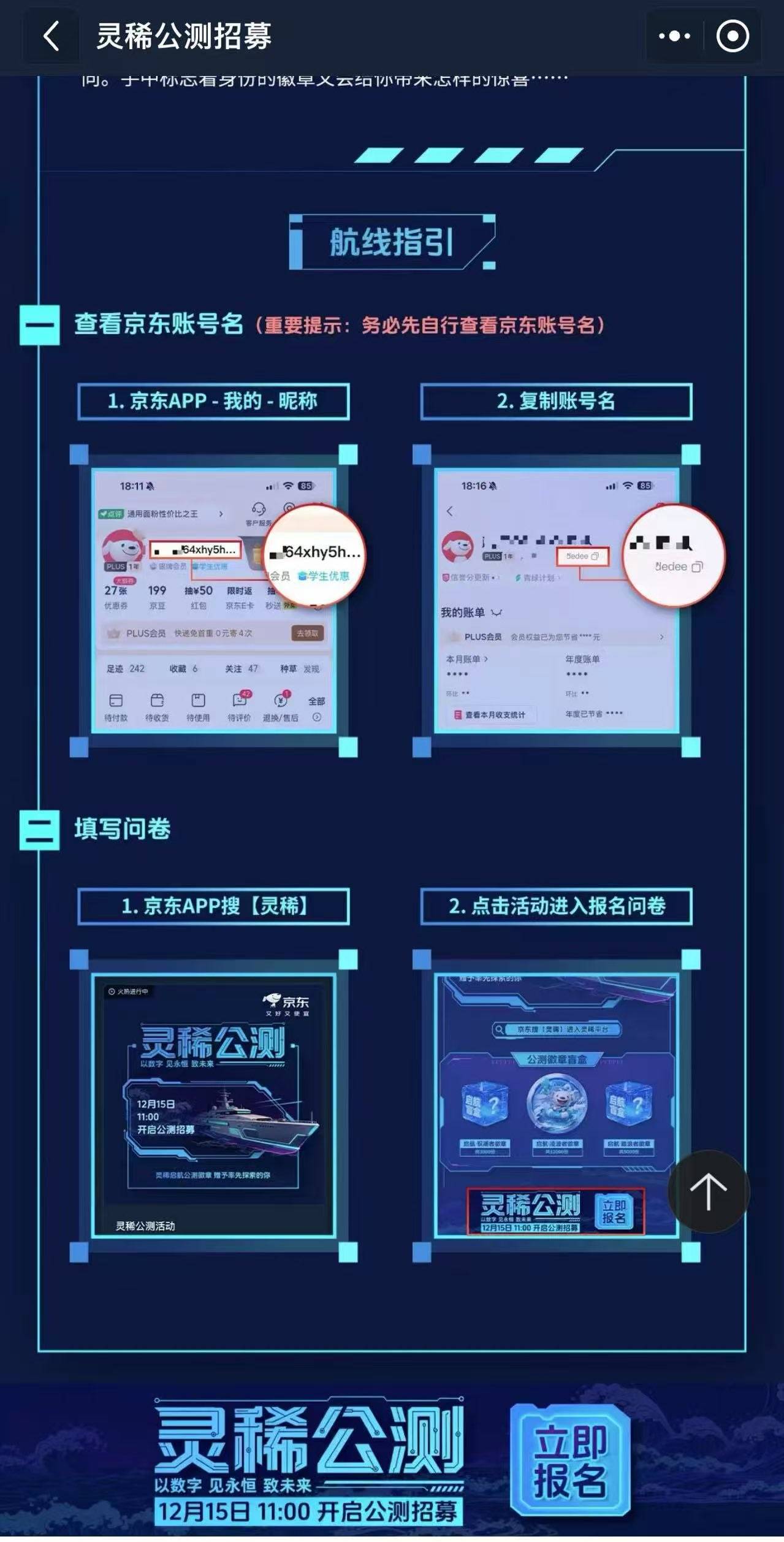 11:00卡点去京东搜灵稀 横幅进去 11点 准点填表 前2w公测资格+盲盒空投昵称和帐号名提前复制到备忘录 重视
