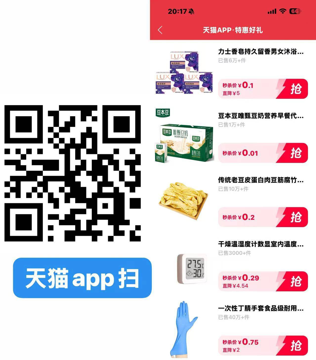 天猫app 扫码 很多0.01实物(都去试试 基本上都有哈)