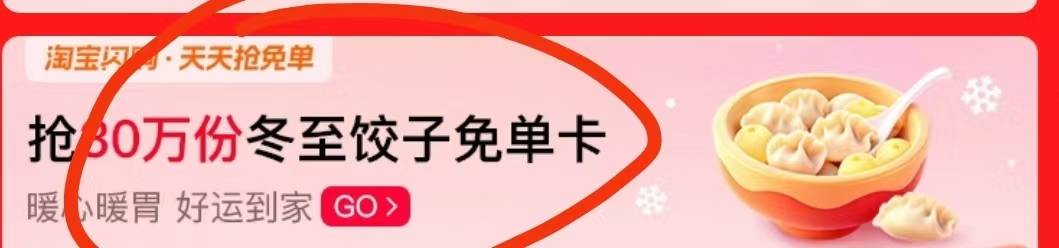 淘宝闪购搜索:冬至,如图进去做任务抽免单卡,有不少人抽中