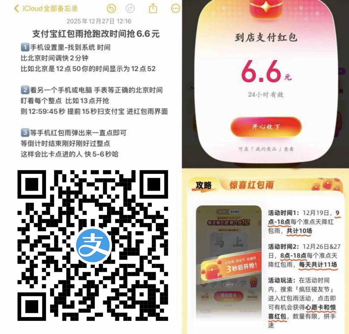每天zfb红包雨必中教程如图 zfb先改时间 再如图去卡点哈8点-18点 今日有11场整点抢6.6吱付鸿苞、心愿卡