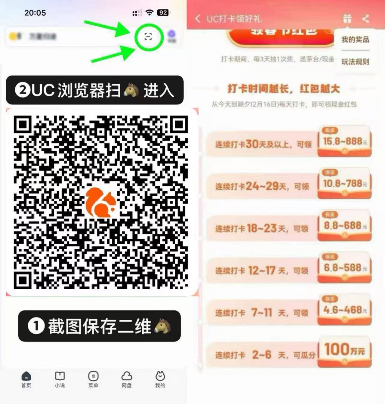 UC浏览器 打卡領15.8连续打卡30天 无需拉人!看图进入活冻 每日去打卡可设置个闹钟⏰避免忘记!