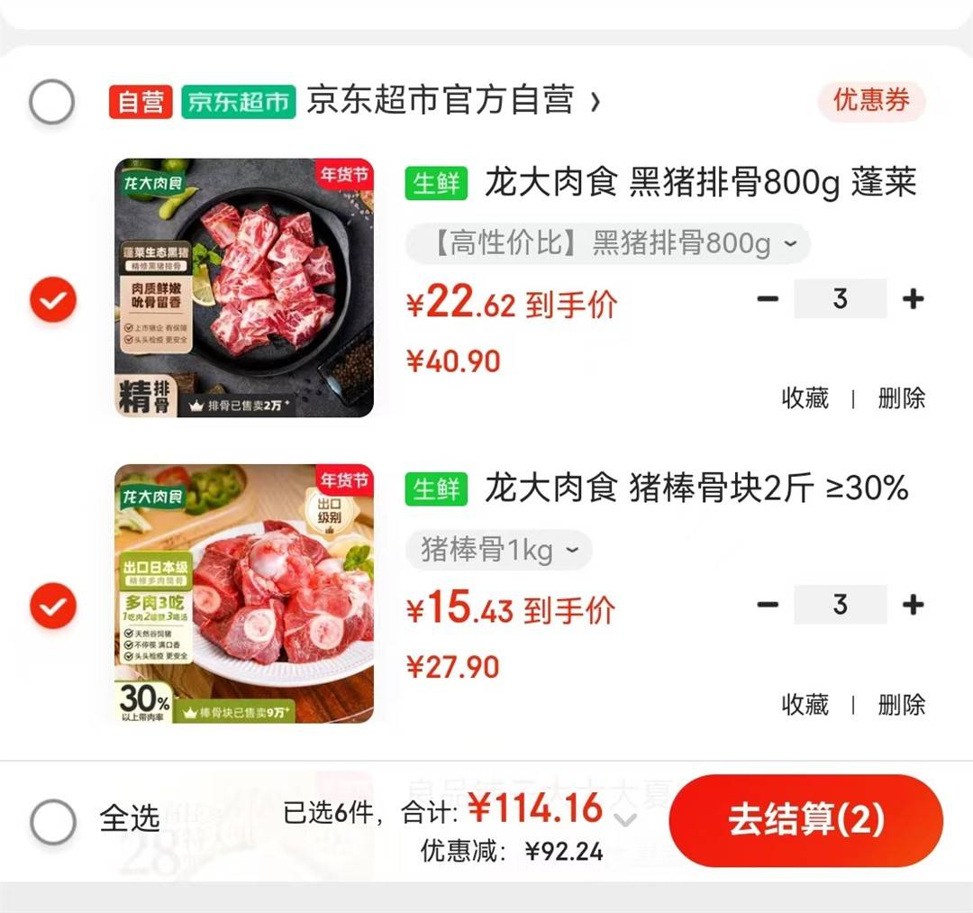 补贴好忦!自营龙大车先领黑五200-20券https://u.jd.com/EOeJ507拍3!猪棒骨块2斤https://u.jd.com/Eaep06c拍3!黑猪排骨800ghttps://u.jd.com/EOehlTN——————♦114亓!屯点过年吃