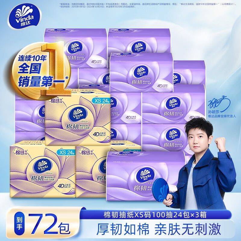 维达抽纸发车领50元券https://kzurl17.cn/ttkaWV维达 棉韧立体美120*195mm100抽*24包*3箱https://u.jd.com/l1fCaSw——71.7元包邮[惊恐]不到1元/包了