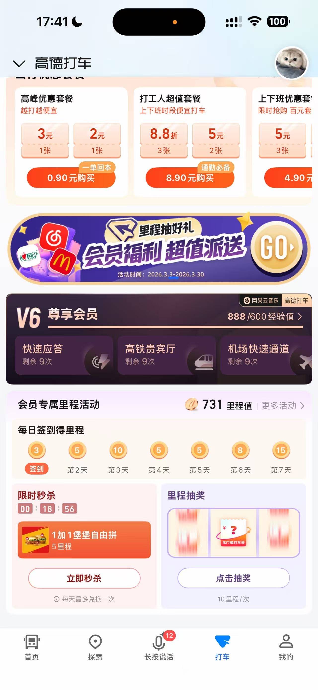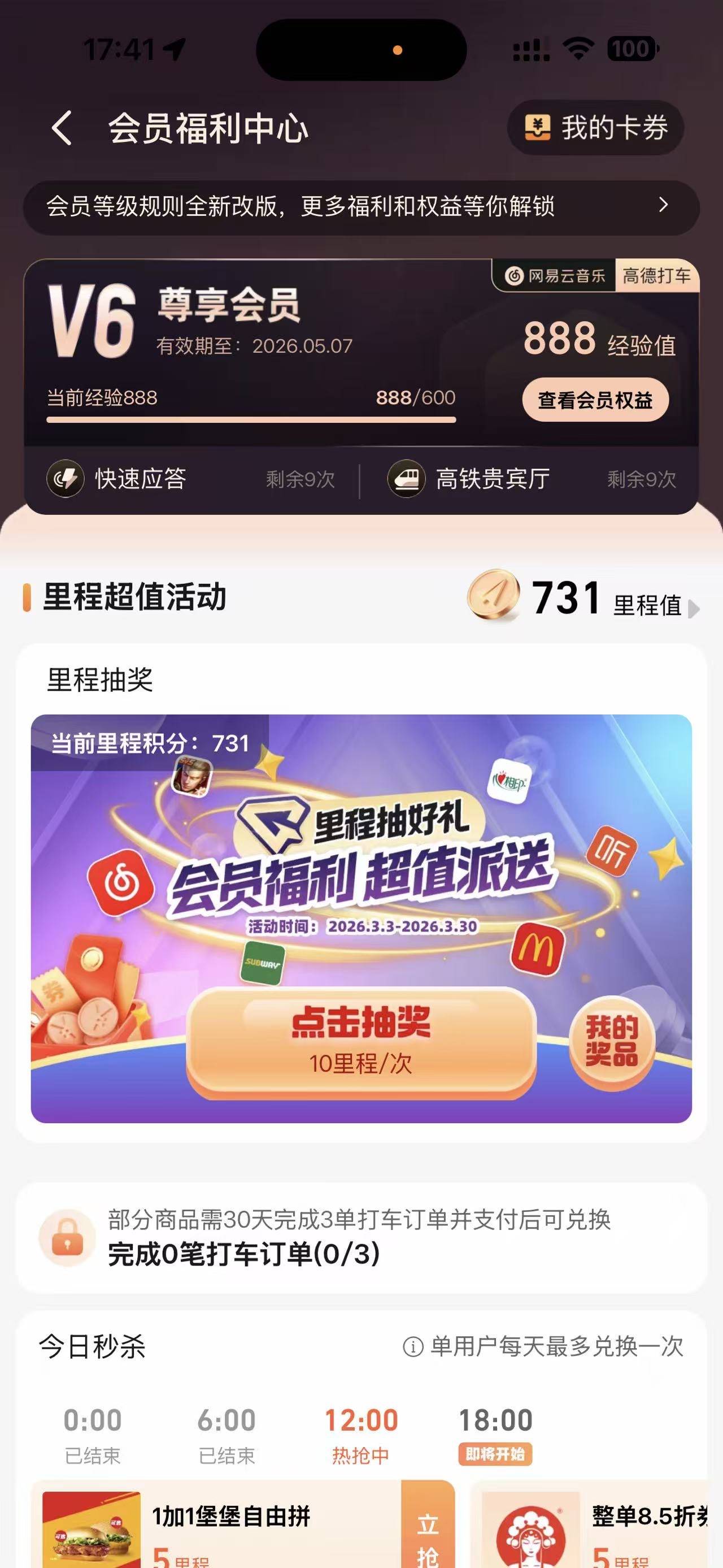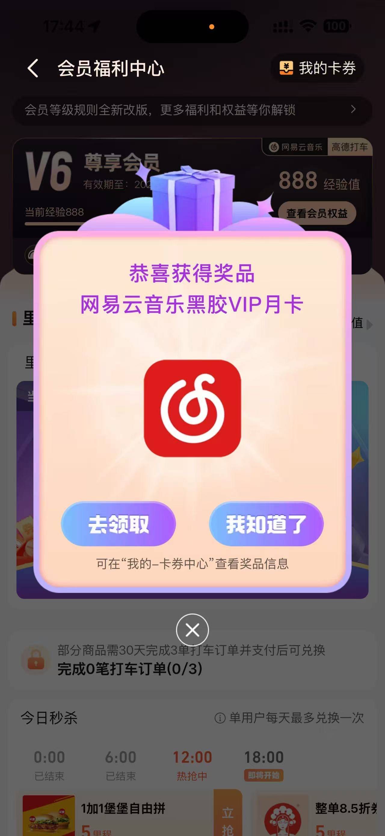 高德有水 打车 下拉会员抽奖 里程抽奖 中网易黑胶会员