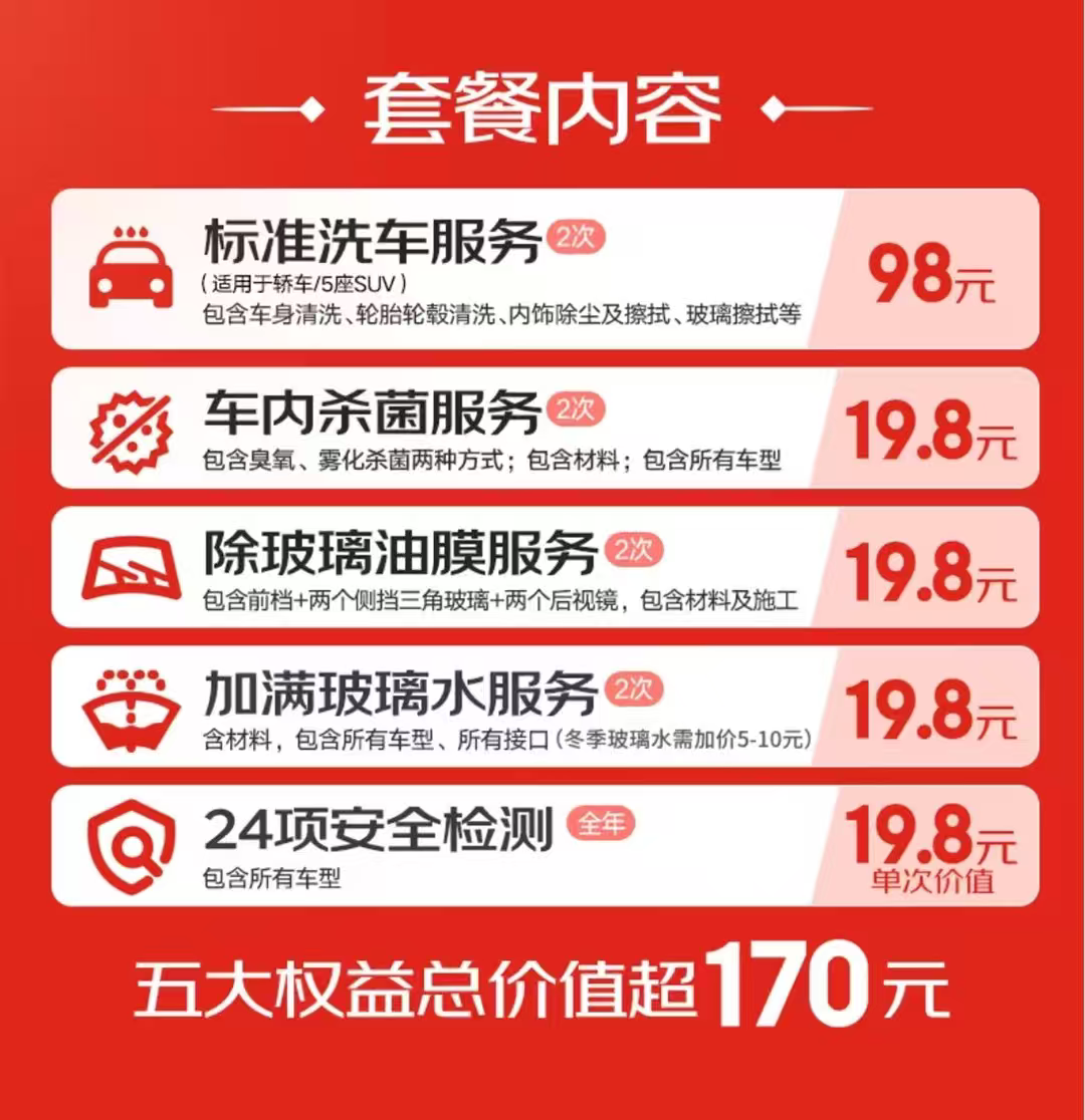有车的屯!京东洗车先领29-10补贴券https://kzurl17.cn/t036vz洗车套餐轿车/SUVhttps://u.jd.com/jav2SUC*包含:标准洗车x2*车内杀菌*2+除油膜*2*加玻璃水*2+安全检测——————♦29.9亓!这忦屯了用*是标准洗车!不是快洗*车身/轮胎/内饰/车玻璃