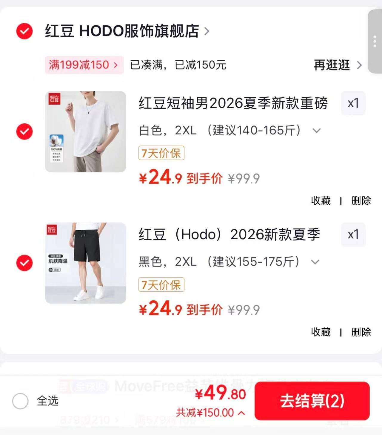 快冲‼红豆旗舰店好价来啦!先领券:199-150https://u.jd.com/ja2QPhE纯棉T恤/运动短裤任选2件https://u.jd.com/ja2gKlphttps://u.jd.com/jr2gtkn——————到手49.8 元折合单件才24.9!