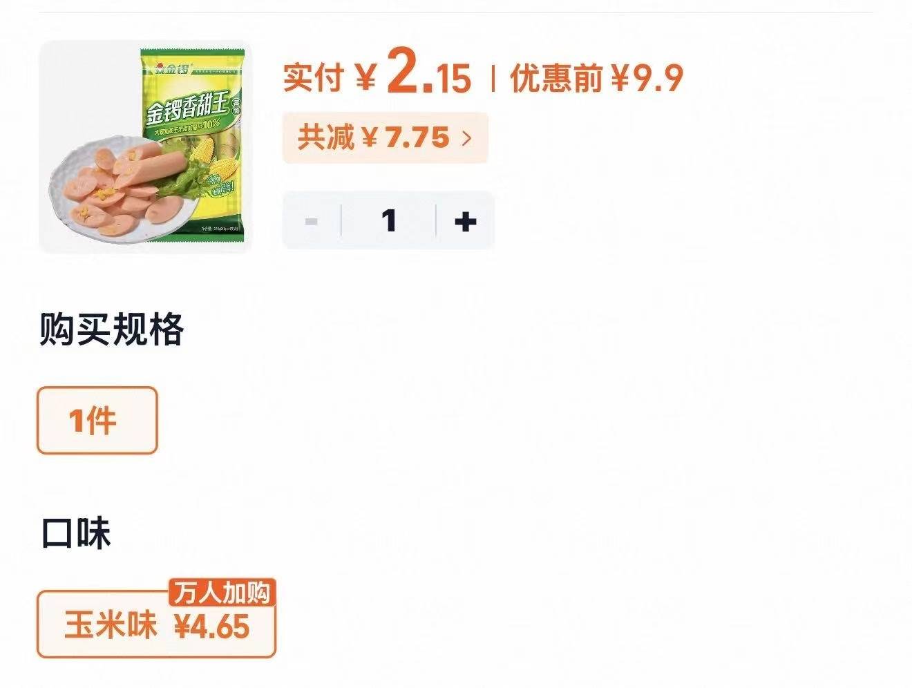 2r左右金锣玉米肠一袋①陶宝首页天猫超市搜:大师兄领1.5-3.5元猫卡-②复制陶宝下单 看最后提交忦8$JCnF5ikLMFQ$:// MU6304
